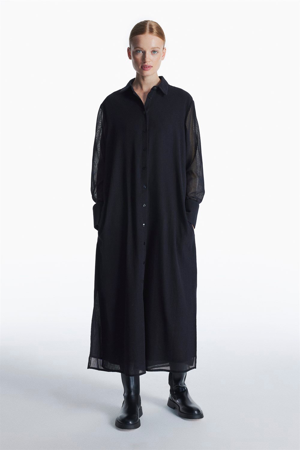 Meaning "jiva" in Japanese, CHI Dress was inspired by the magnificient energy of life circle; static or in motion. With its elegant and modest oversize cut, the chi flows freely through your body and soul. Makes you feel strong and high with its rebellious netting texture. This minimalist shirt dress can be worn on its own as it is lined completely with %100 cotton voile fabric. Let your rebellious light shine through CHI dress.
