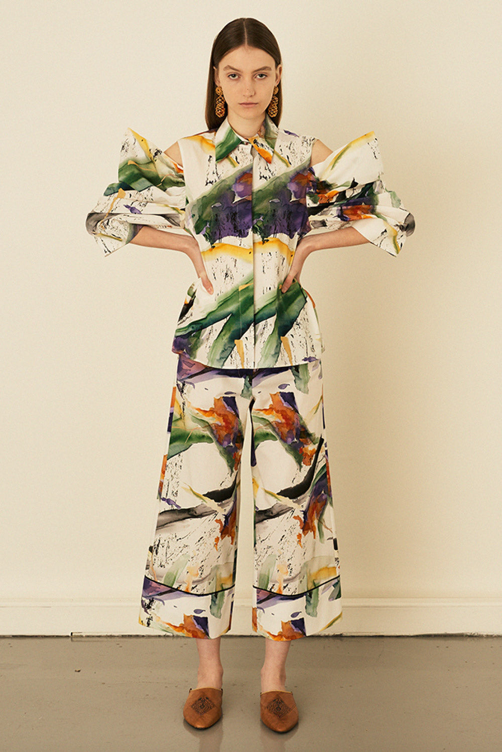 model is 1.80 cm tall, with a chest measure of 85 cm, a waist measure of 59 cm, a hip measure of 90 cm and wears a size S