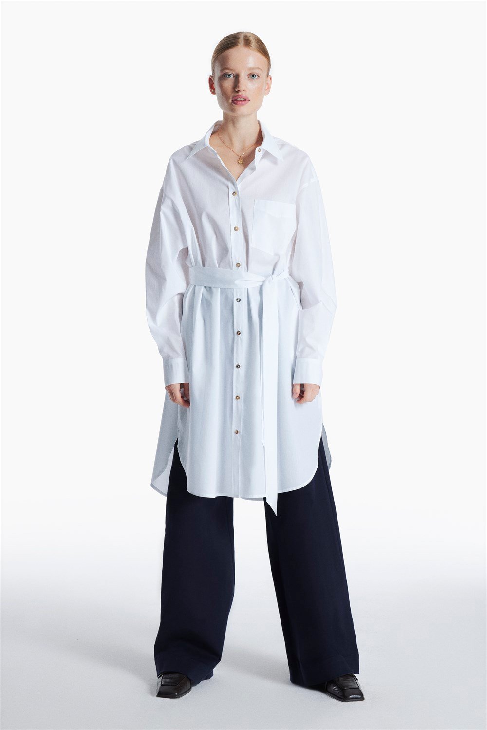 Meaning "Bindery love and affection" in Japanese, YUA Dress was inspired by the profound love of life, that unites us all in. Pure white anti-bacterial cotton structure exposes itself through the modest simplicity of this shirt dress. With its relaxed oversize cut, this stylish comfort dress features a curved longline hem, adjustable waist belt and a pointed collar. Let your light shine through YUA dress...